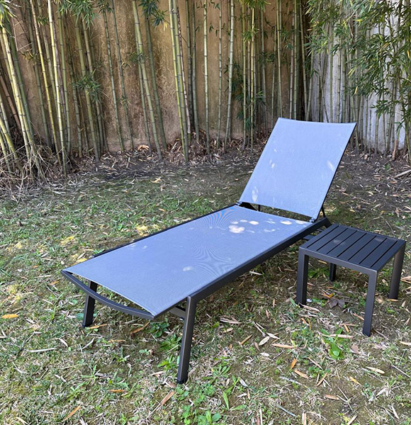 La acompaña la mesa auxiliar de 40×40 totalmente en aluminio.